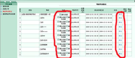 登录以后,选择“学生成绩”中的“等级考试报名”